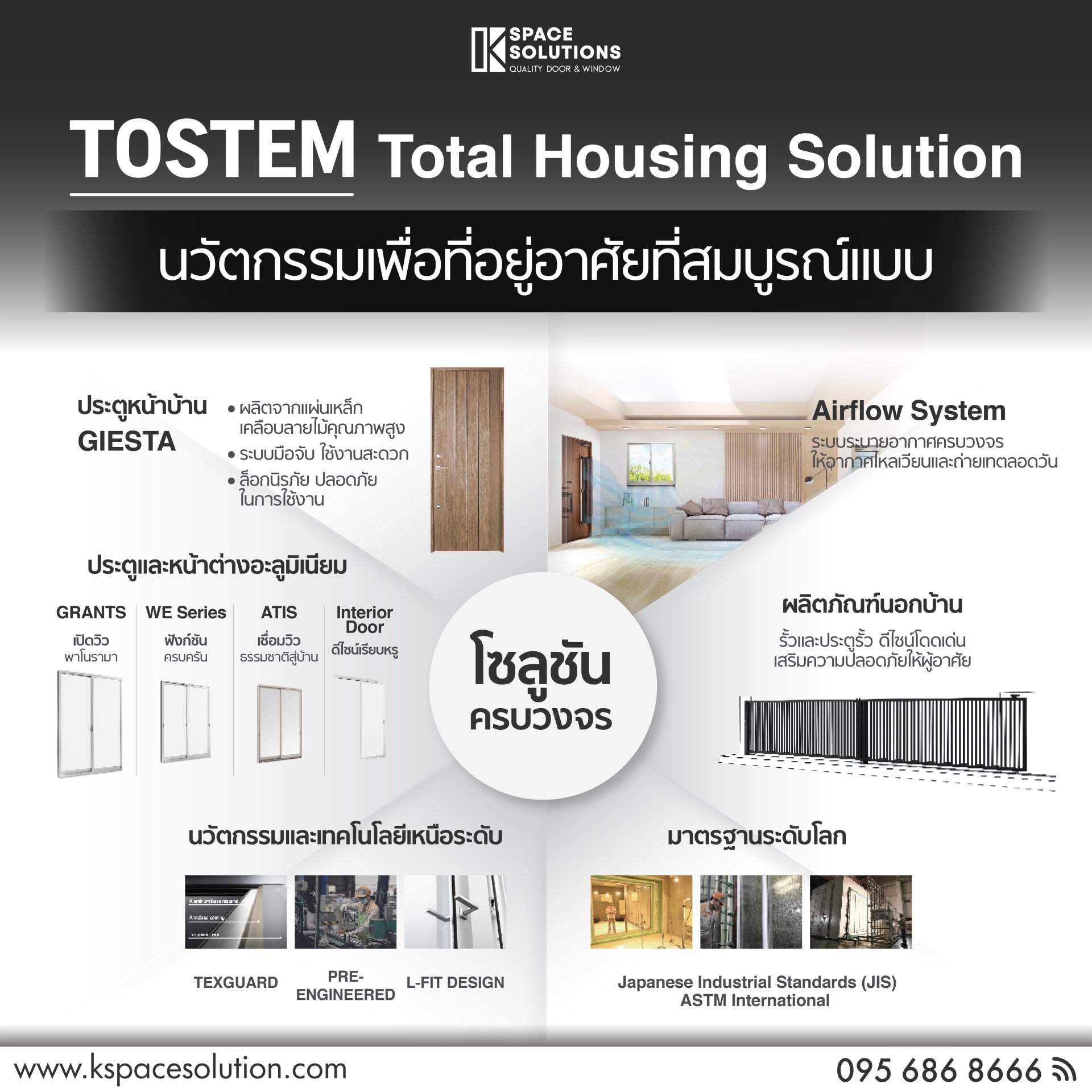 TOSTEM ผู้นำด้านการออกแบบประตูและหน้าต่างจากประเทศญี่ปุ่น มุ่งมั่นพัฒนาผลิตภัณฑ์เพื่อตอบโจทย์ทุกไลฟ์สไตล์การอยู่อาศัย ด้วยผลิตภัณฑ์ 4 กลุ่มหลัก ได้แก่