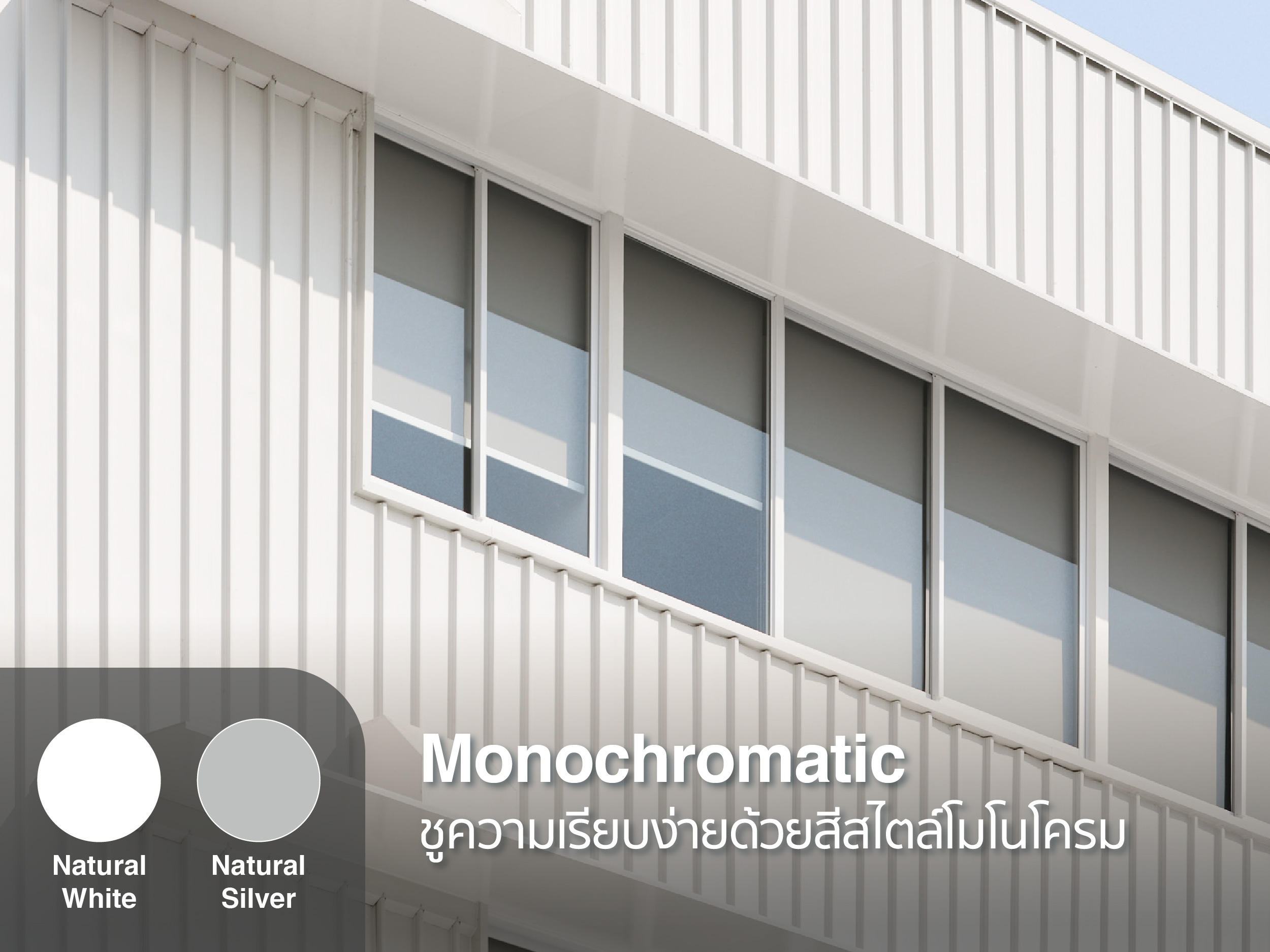 ข้อควรพิจารณา : อาจเห็นคราบฝุ่นหรือคราบน้ำได้ง่าย ควรเลือกอลูมิเนียมเคลือบสีคุณภาพสูง